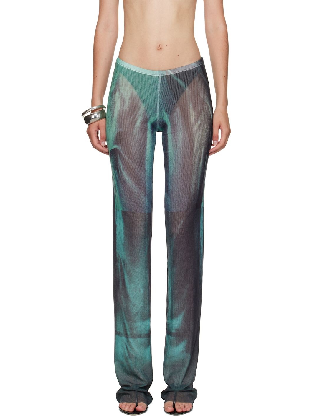Sheer nylon tulle lounge pants. · Straight-leg · Graphic pattern printed throughout · Elasticized waistband · Raw edge at cuffs · Locker loop at back · Fully lined Supplier color: Indigo Body: 100% polyamide. Lining: 100% polyamide. Made in Italy 252808F086001