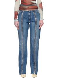 Straight-leg non-stretch denim jeans · Fading throughout · Low-rise · Five-pocket styling · Zip fly · Logo plaque at coin pocket · Zip expansion panel at front legs · Locker loop at back waist · Logo-engraved silver-tone hardware · Contrast stitching in tan Supplier color: Vintage blue Body: 100% cotton. Pocket lining: 65% polyester, 35% cotton. Made in Italy 252808F069006