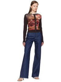Paneled knit viscose-blend and sheer nylon mesh cardigan. · Rib knit crewneck, hem, and cuffs · Button closure · Graphic pattern printed at front · Locker loop at back collar Supplier color: Brown/Green Body 1: 70% viscose, 30% polyester. Body 2: 100% polyamide. Made in Italy 242808F095004