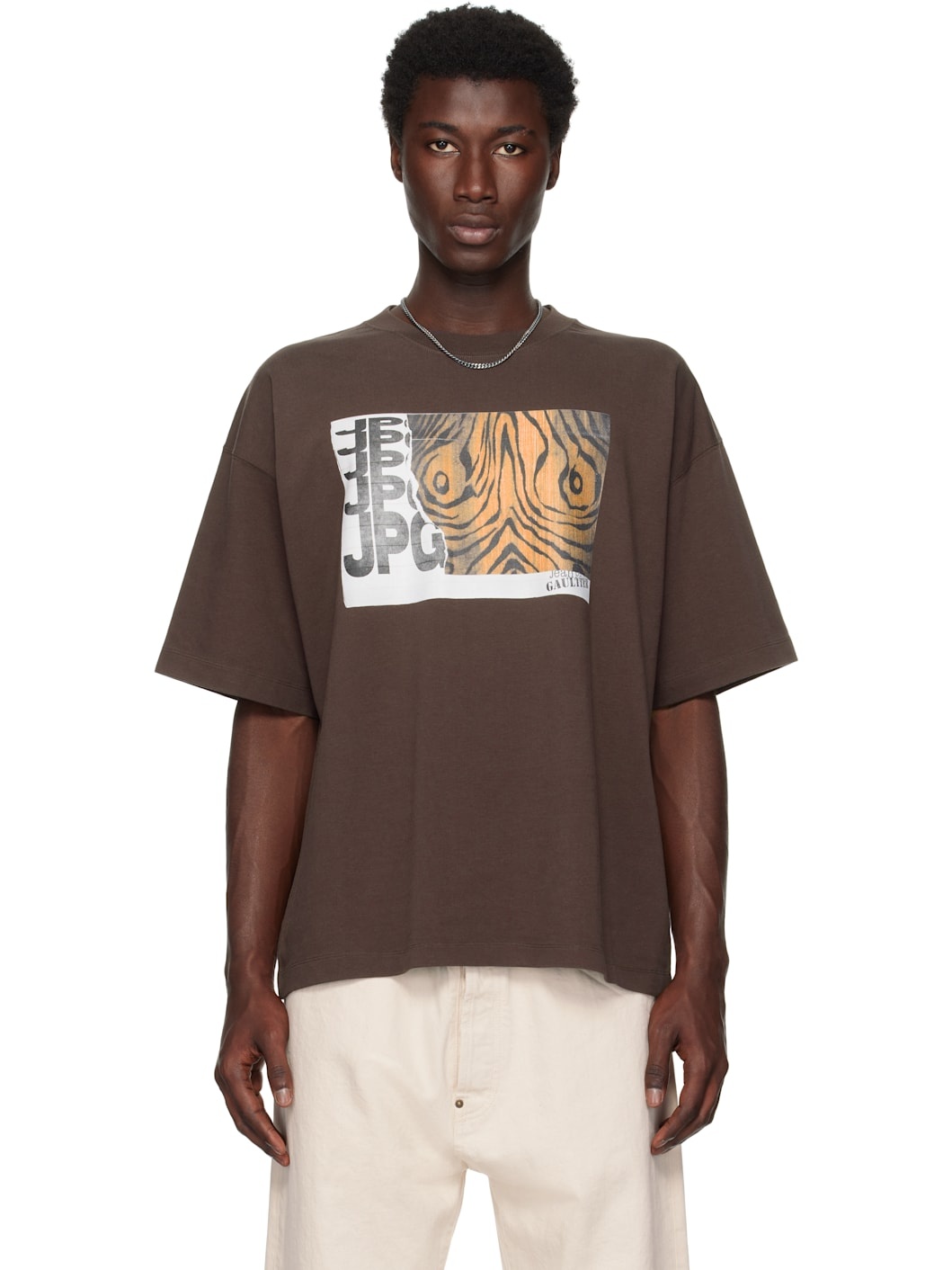 Brown Printed Wood Oversized T-shirt
