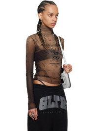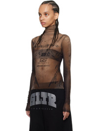 Sheer nylon tulle turtleneck. Graphic pattern printed throughout. · Logo graphics printed at front · Raw edge at hem · Locker loop at back collar Part of the Jean Paul Gaultier x Shayne Oliver collaboration. Supplier color: Brown/Black 100% polyamide. Made in Italy 242808F099002