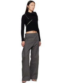 Non-stretch denim trousers. · Paneled construction · Wide-leg · Adjustable press-studs at waistband · Frayed edge at front zip pocket · Zip vent at cuffs · Locker loop at back waist · Logo-engraved silver-tone hardware Supplier color: Dark grey Body: 65% polyester, 35% cotton. Trim: 100% cotton. Made in Italy 252808F087000