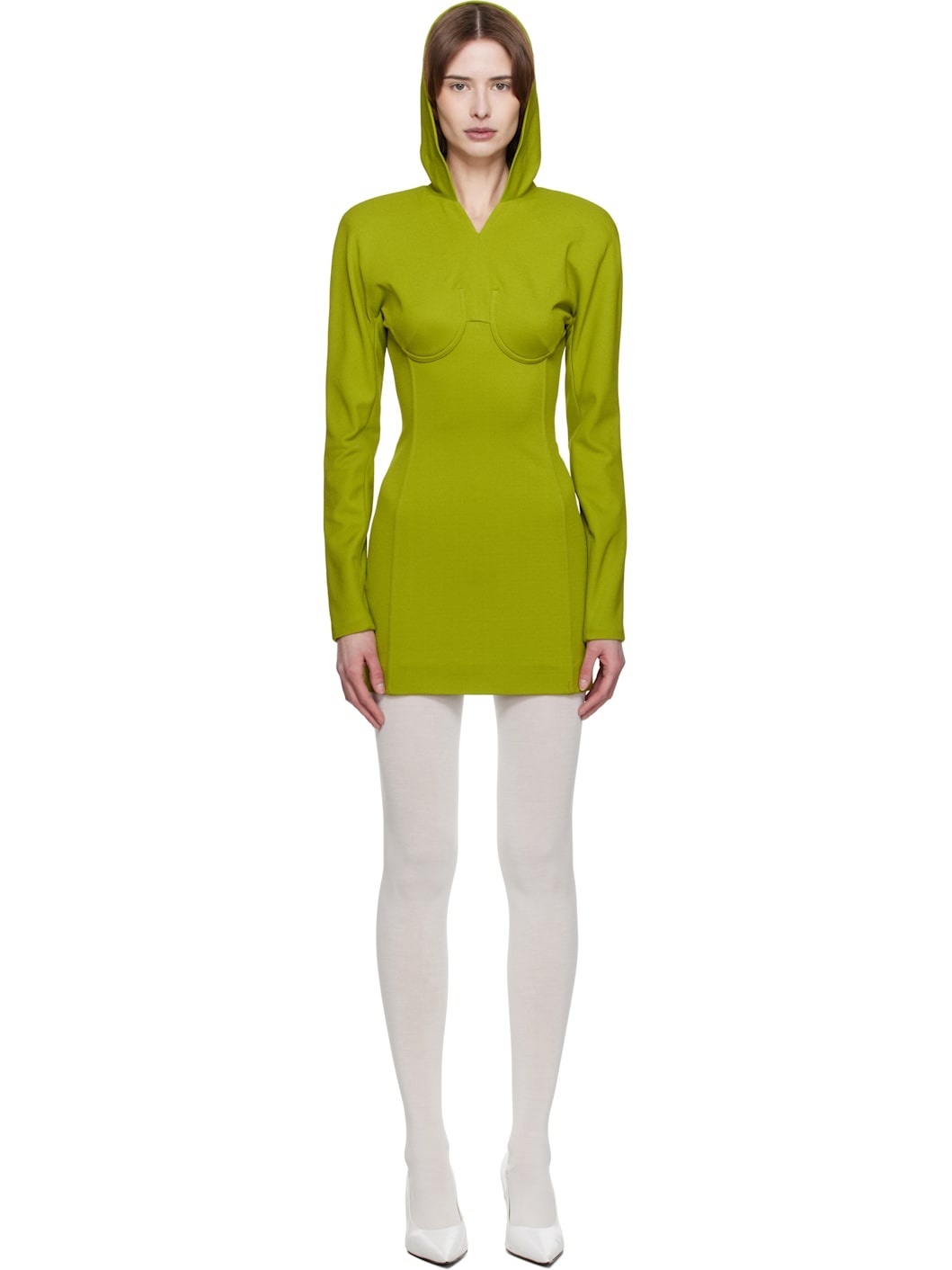 Stretch viscose-blend crepe minidress. · Hood at V-neck · Padded cups · Concealed zip closure at open back · Partial mesh lining Supplier color: Acid green Body: 78% viscose, 16% polyamide, 6% elastane. Lining: 69% polyamide, 31% elastane. Made in Italy 251808F052008