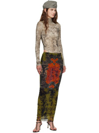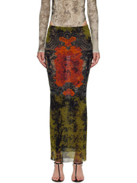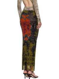 Khaki & Orange 'The Long Médaillon' Midi Skirt