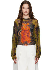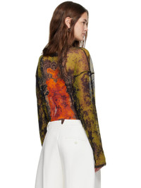 Sheer nylon tulle top. · Graphic pattern printed throughout · Crewneck · Logo printed at chest and back · Dropped shoulders · Locker loop at back collar Supplier color: Orange 100% polyamide. Made in Italy 252808F110002