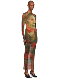 Semi-sheer nylon tulle maxi dress. Modified check pattern printed throughout. · Crewneck · Raw edge at hem · Locker loop at back collar Supplier color: Sepia/Yellow 100% polyamide. Made in Italy 242808F055056