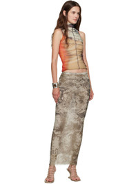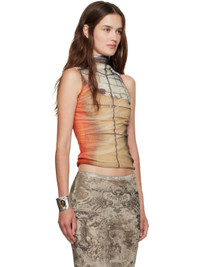 Sheer nylon tulle tank top. · Graphic pattern printed throughout · Mock neck · Draping at front and back · Locker loop at back collar · Fully lined Supplier color: Orange Body: 100% polyamide. Lining: 100% polyamide. Made in Italy 252808F099001