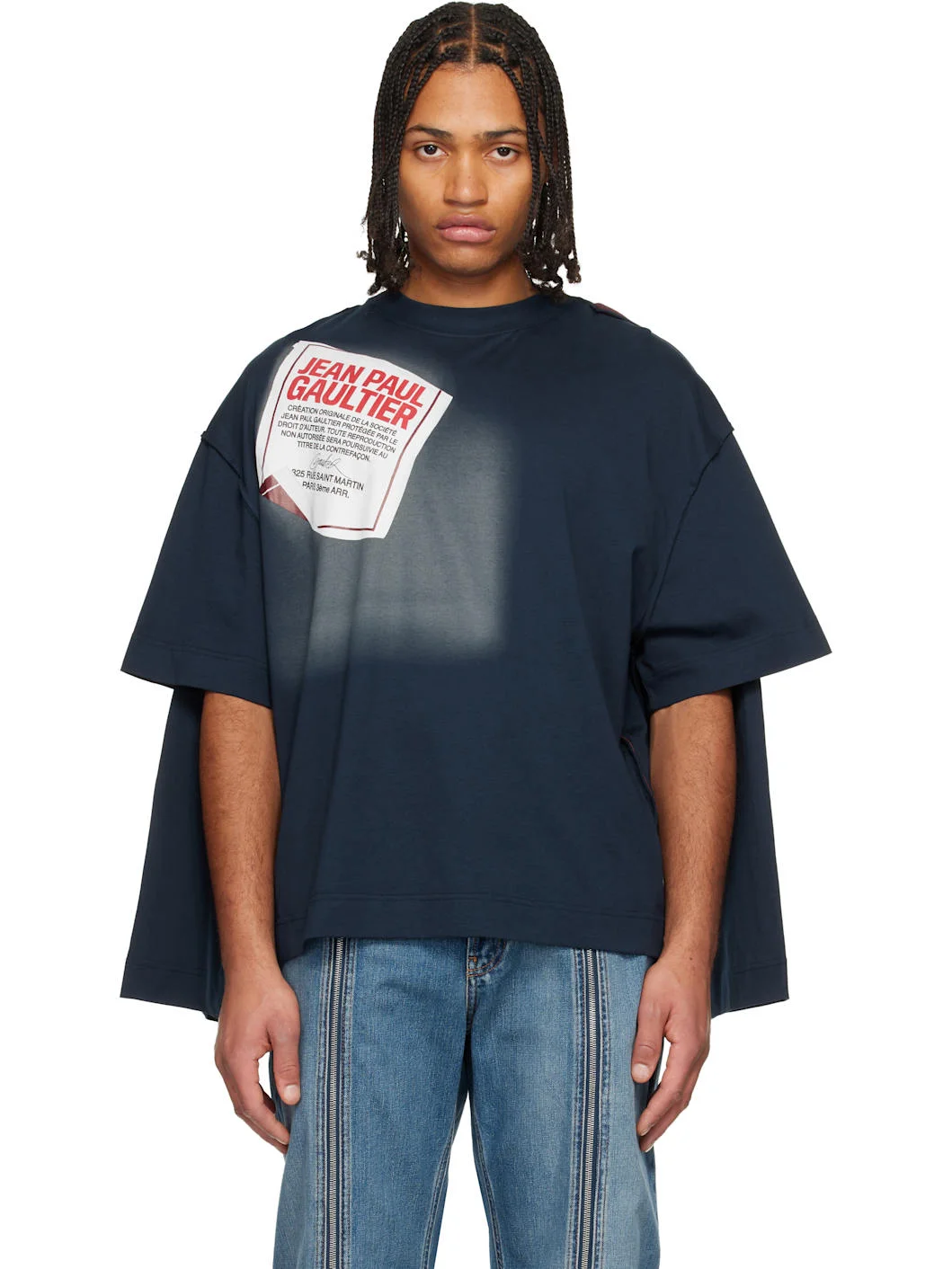 Oversized cotton jersey T-shirt. · Layered construction · Rib-knit crewneck · Logo graphic and text printed at front · Dropped shoulders · Locker loop at back collar · T-shirt-style trim at back for alternate styling Supplier color: Navy/White/Red 100% cotton. Made in Portugal 252808M213035