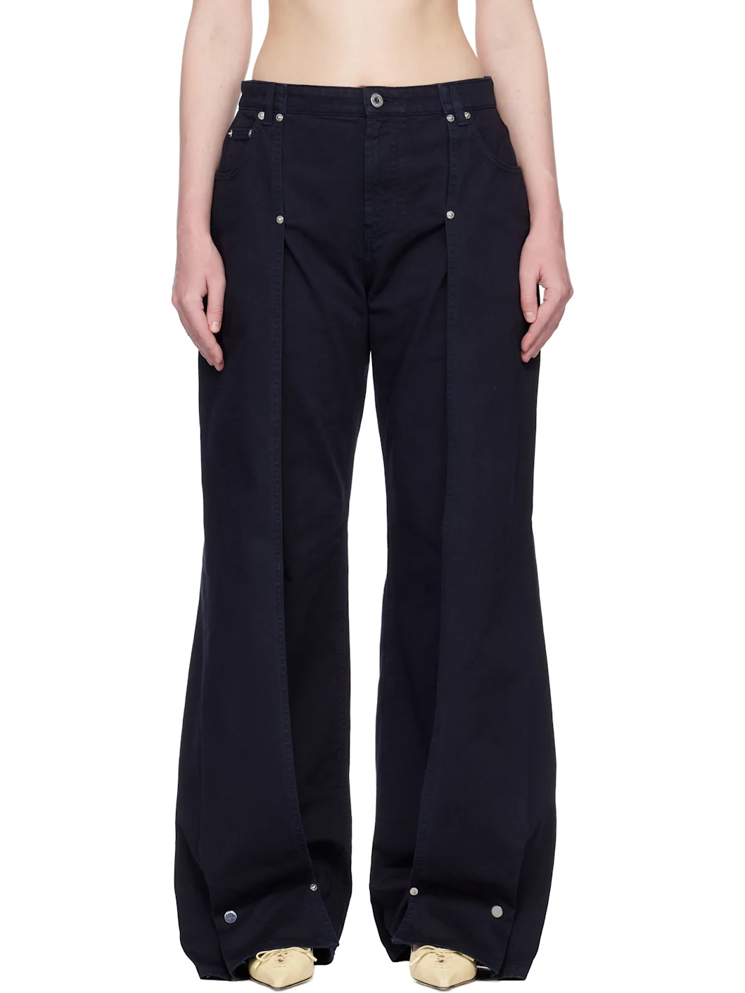 Non-stretch denim jeans. · Loose-fit · Five-pocket styling · Zip fly · Pleats and rivets at front · Press-stud fastening at cuffs · Logo patch at back waistband · Locker loop at back · Logo-engraved silver-tone hardware Supplier color: Navy 100% cotton. Made in Italy 252808F069005