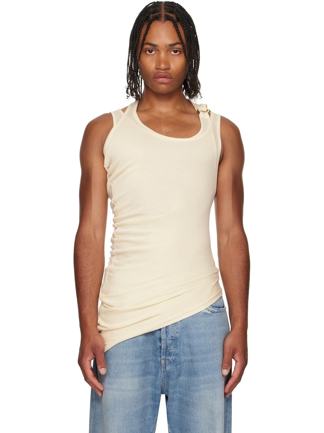 Ribbed cotton jersey tank top. · Layered construction · Scoop neck · Logo hardware and extended trim at neck · Asymmetrical hem · Locker loop at halter strap Supplier color: Ecru 100% cotton. Made in Portugal 252808M214009