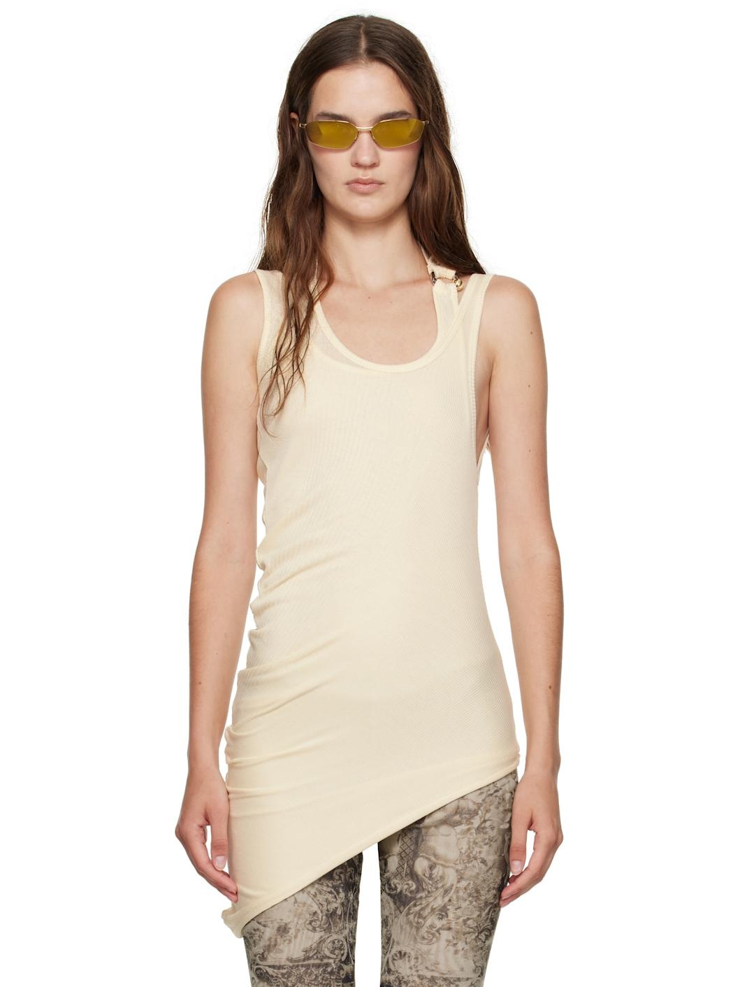 Off-White Ribbed Twisted Double Layer Piercing Tank Top