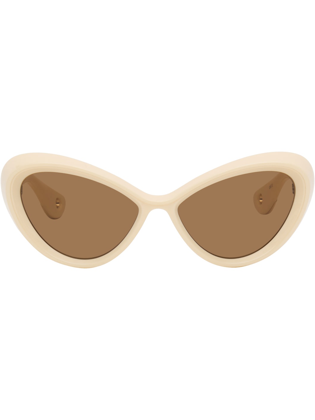 Handcrafted cat-eye acetate-frame sunglasses. · Brown lenses · 100% UVA/UVB protection, category 3 · Integrated nose pads · Logo-engraved metal temples · Cutout at metal temple tips · Includes pouch Available exclusively at SSENSE. Supplier color: Ecru Acetate. Made in Italy 252808F005002