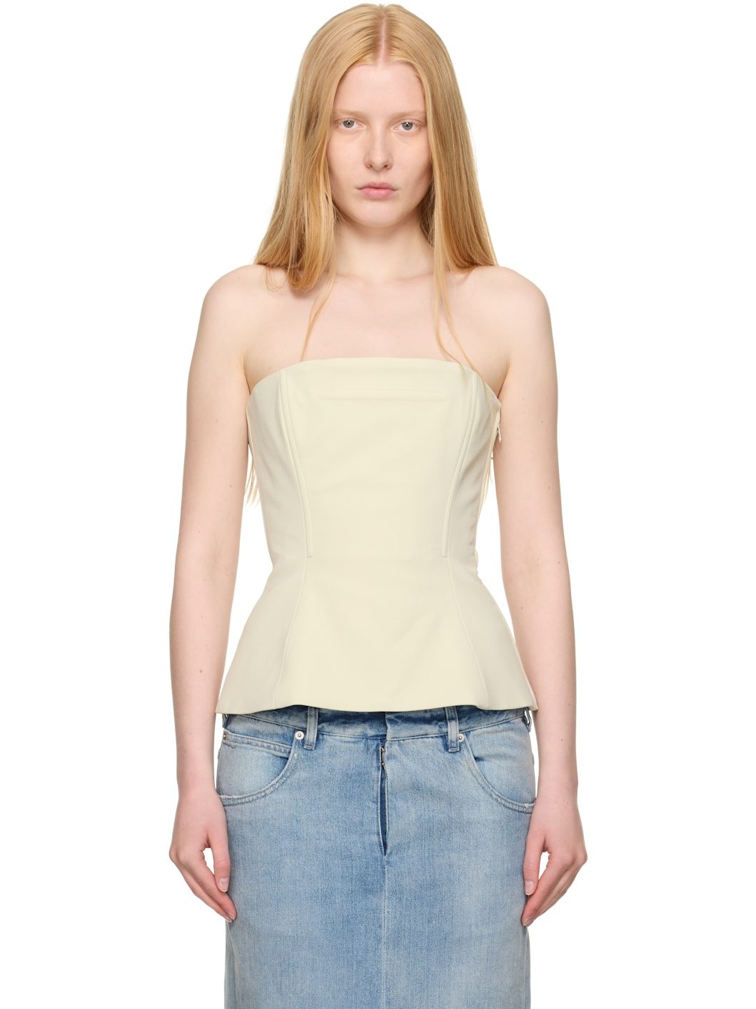 Double-faced cotton twill top. Boning and topstitching throughout. · Straight neck · Zip closure at side seam · Locker loop at back Available exclusively at SSENSE. Supplier color: Vanilla 100% cotton. Made in France 252808F111013
