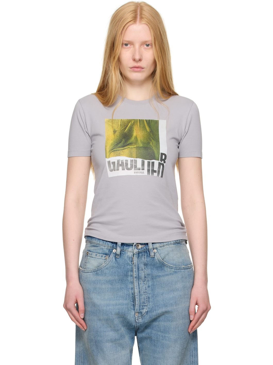 Stretch cotton jersey T-shirt. · Rib-knit crewneck · Graphic and logo printed at front · Locker loop at back collar Available exclusively at SSENSE. Supplier color: Heather grey 96% cotton, 4% elastane. Made in Portugal 252808F110012