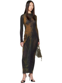 Semi-sheer nylon mesh maxi dress. Graphic printed throughout. · Round neck · Raw edge at hem · Loop at back collar · Mesh lining Available exclusively at SSENSE. Supplier color: Seafoam/Mustard 100% nylon. Made in Italy 252808F055022