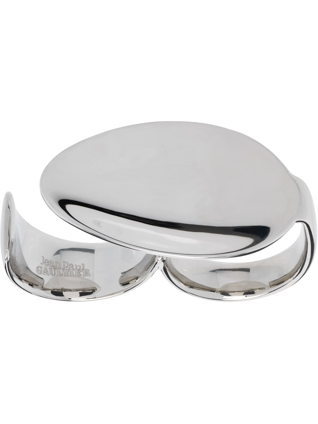 Two-finger ring in silver-tone brass. Logo etched at side. Supplier color: Silver Brass. Made in Italy 252808F024001