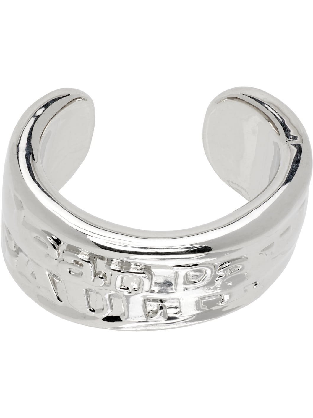 Open cuff bracelet in silver-tone brass. · Logo at face · D2.5" Supplier color: Silver Brass. Made in Italy 252808M142002
