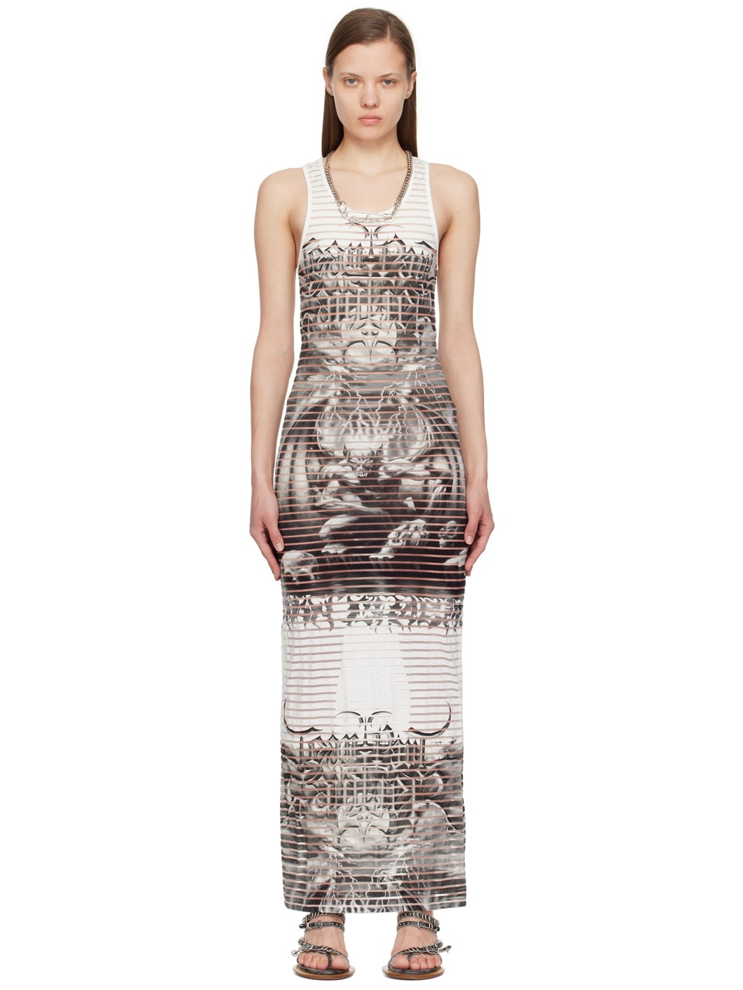 Semi-sheer stretch cotton-blend devore jersey dress. Graphic pattern printed throughout. · Scoop neck · Locker loop at racer back Supplier color: White/Black 89.5% cotton, 7% polyamide, 3.5% elastane. Made in Portugal 242808F055006