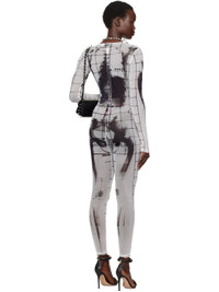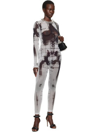 Semi-sheer nylon tulle jumpsuit. Graphic and check pattern printed throughout. · Crewneck · Zip closure and locker loop at back Supplier color: White/Black 100% nylon. Made in Italy 251808F070001