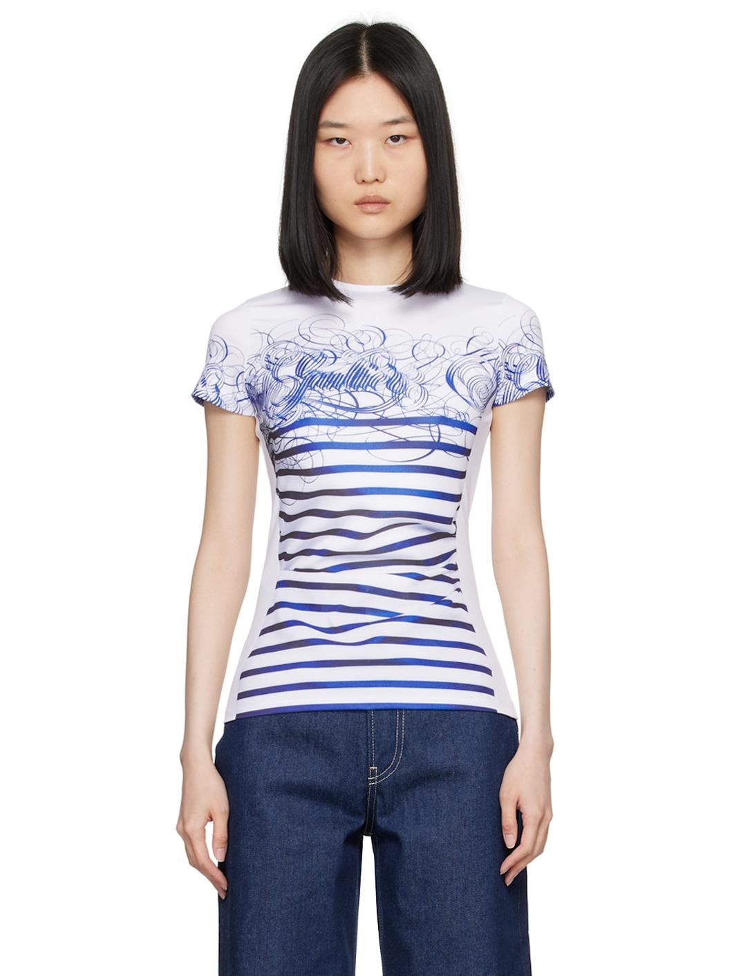 White & Blue 'The Calligraphy Marinière' T-Shirt