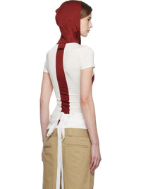 Stretch viscose interlock jersey hoodie. · Paneled construction · Drawstring at hood · Half-zip closure · Chevron pattern at front · Logo patch at cuff · Stripe at back Supplier color: White/Burgundy 95% viscose, 5% elastane. Made in Portugal 251808F110002