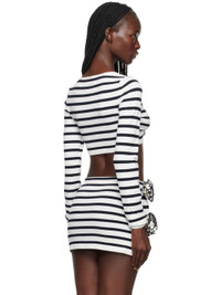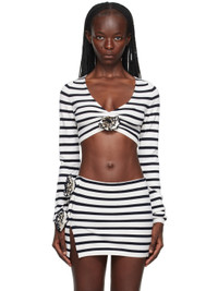 Viscose-blend jersey T-shirt. Stripes throughout. · Pleats at Y-neck · Handcrafted floral applique at chest · Cropped hem · Rib knit cuffs · Locker loop at back Part of the Flowers collection. Supplier color: Ecru/Navy 70% viscose, 30% polyester. Made in Italy 232808F110005