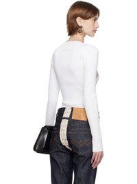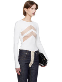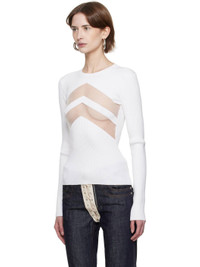 Rib-knit viscose-blend sweater. · Crewneck · Sheer mesh chevron panels at front · Locker loop at back Supplier color: White 67% viscose, 28% polyester, 5% polyamide. Made in Italy 251808F110010