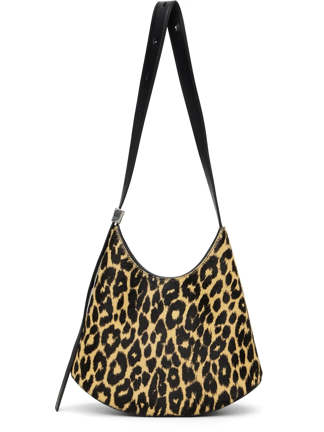 Hair-on and buffed leather shoulder bag. · Leopard pattern printed throughout · Adjustable shoulder strap · Magnetic closure · Card holder at interior · Buffed leather lining · H7.25" x W11" x D4" Supplier color: Canvas beige Leather. Made in Italy 252249F048010
