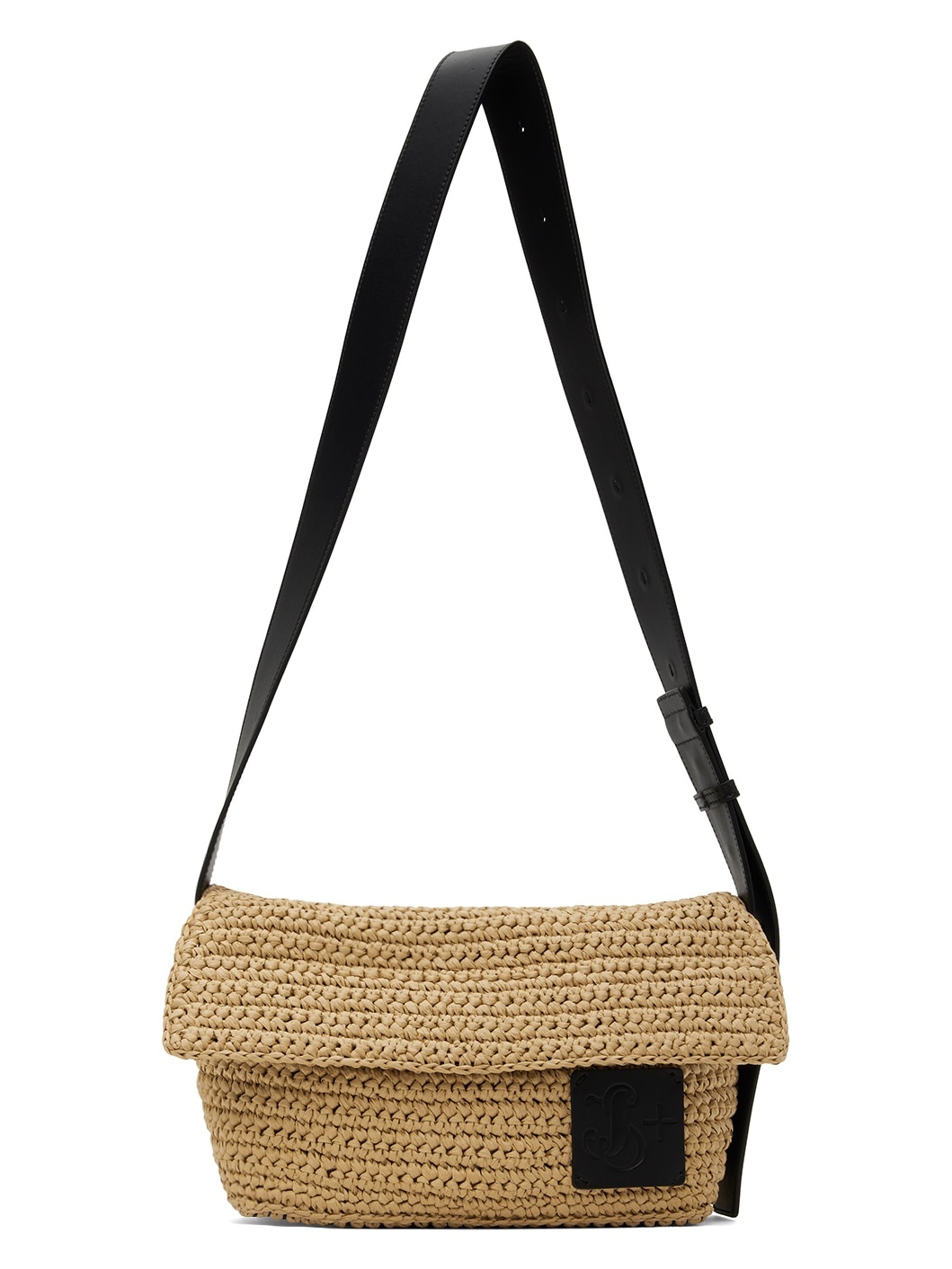 Woven raffia shoulder bag in beige. · Buffed calfskin throughout · Adjustable shoulder strap · Logo patch at face · Magnetic flap · Logo embossed at interior · H8" x W12.5" x D5" Supplier color: Natural Body: 100% raffia palm. Trim: 100% calfskin. Made in Italy 241249F048042