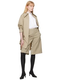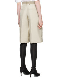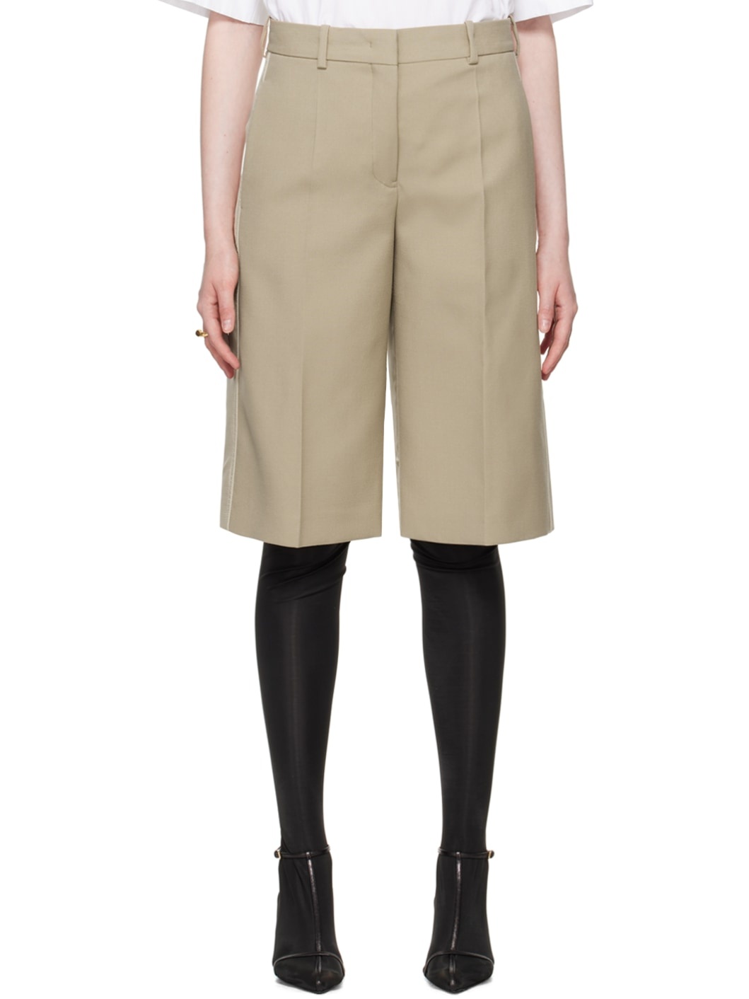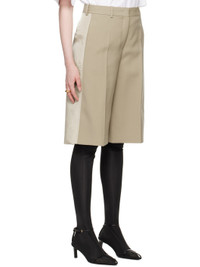 Straight-leg wool canvas and viscose twill shorts. · Paneled and layered construction · Low-rise · Belt loops · Four-pocket styling · Zip-fly · Creased legs · Raw edge at back cuffs Supplier color: Khaki green Body 1: 100% wool. Body 2: 100% viscose. Lining: 100% cotton. Made in Italy 241249F088009