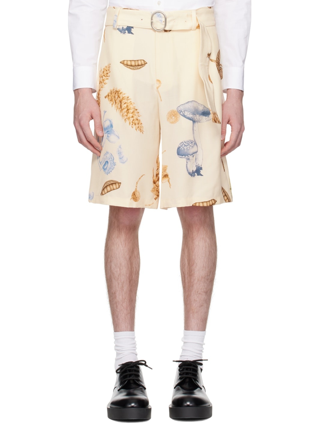Viscose hopsack shorts. Graphics printed throughout. · Belt loops · Pin-buckle belt at waistband · Four-pocket styling · Zip-fly Supplier color: 960 100% viscose. Made in Italy 241249M193008