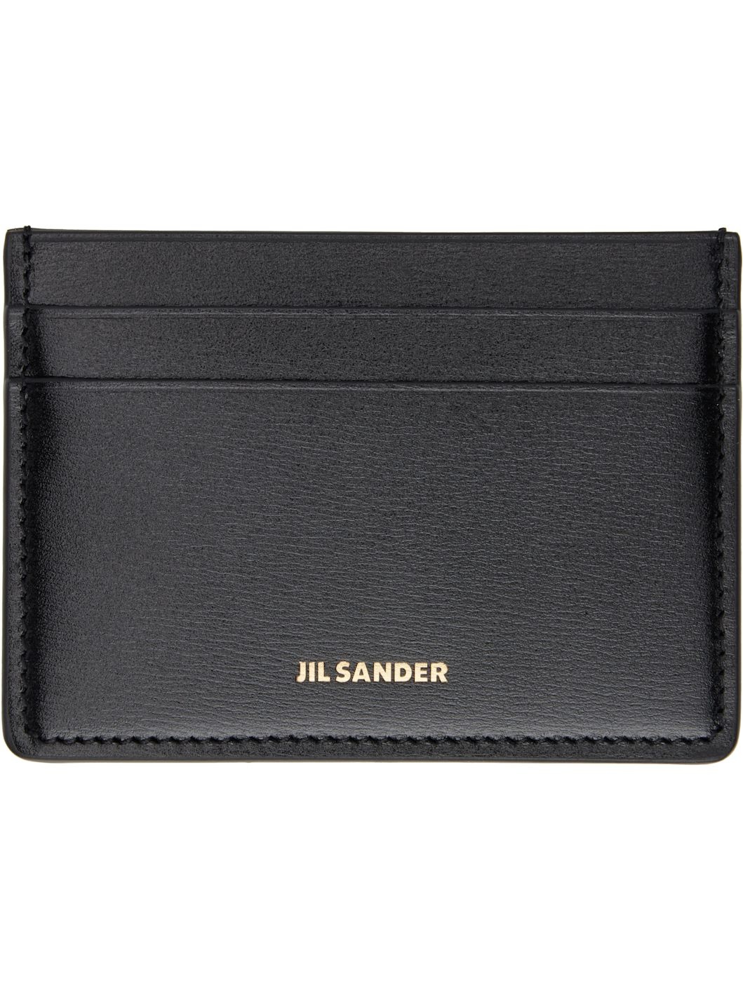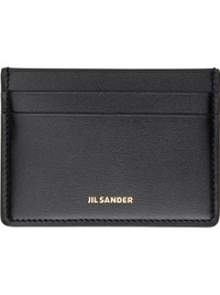 Buffed calfskin card holder in black. · Logo stamp at face · Four card slots · Central note slot · Nappa leather lining · H2.75" x W3.75" Supplier color: Black Calfskin. Made in Italy 251249F037003