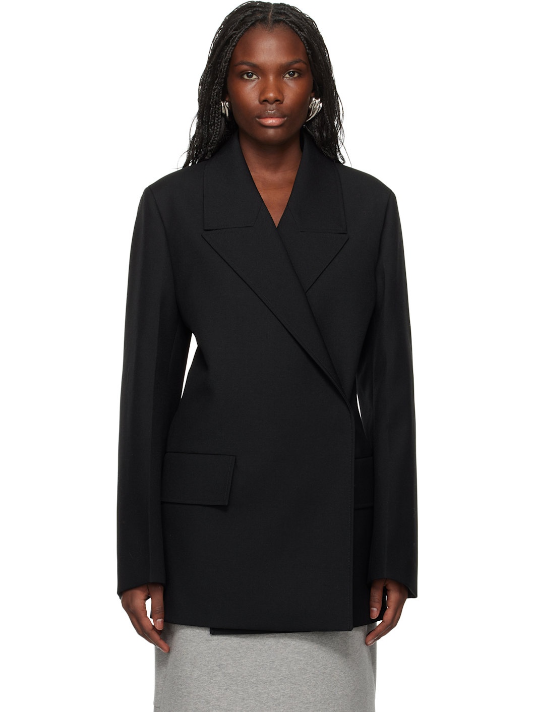 Wool twill blazer. · Notched lapel · Concealed double-breasted button closure · Flap pockets · Padded shoulders · Pleats at back · Full satin lining Supplier color: Black Body: 100% wool. Lining: 100% viscose. Made in Italy 242249F057000