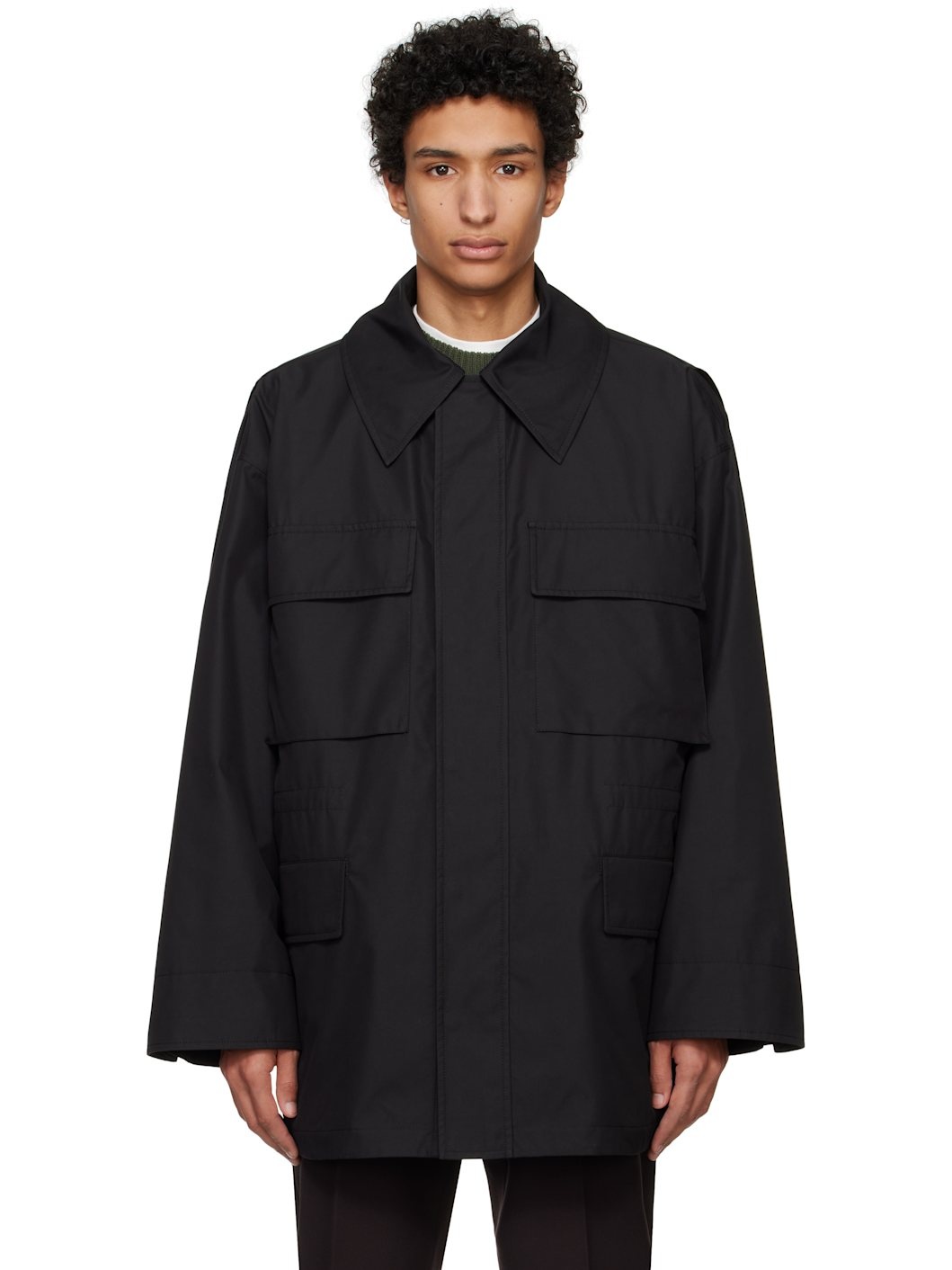 Cotton-blend twill jacket. · Spread collar · Two-way zip closure with press-stud placket · Flap pockets · Concealed drawstring at waist · Dropped shoulders · Adjustable press-stud tab at cuffs · Twin pleats at back · Patch pocket at interior · Fully lined Supplier color: Black Body: 70% cotton, 30% polyester. Lining: 100% cotton. Made in Italy 251249M180010