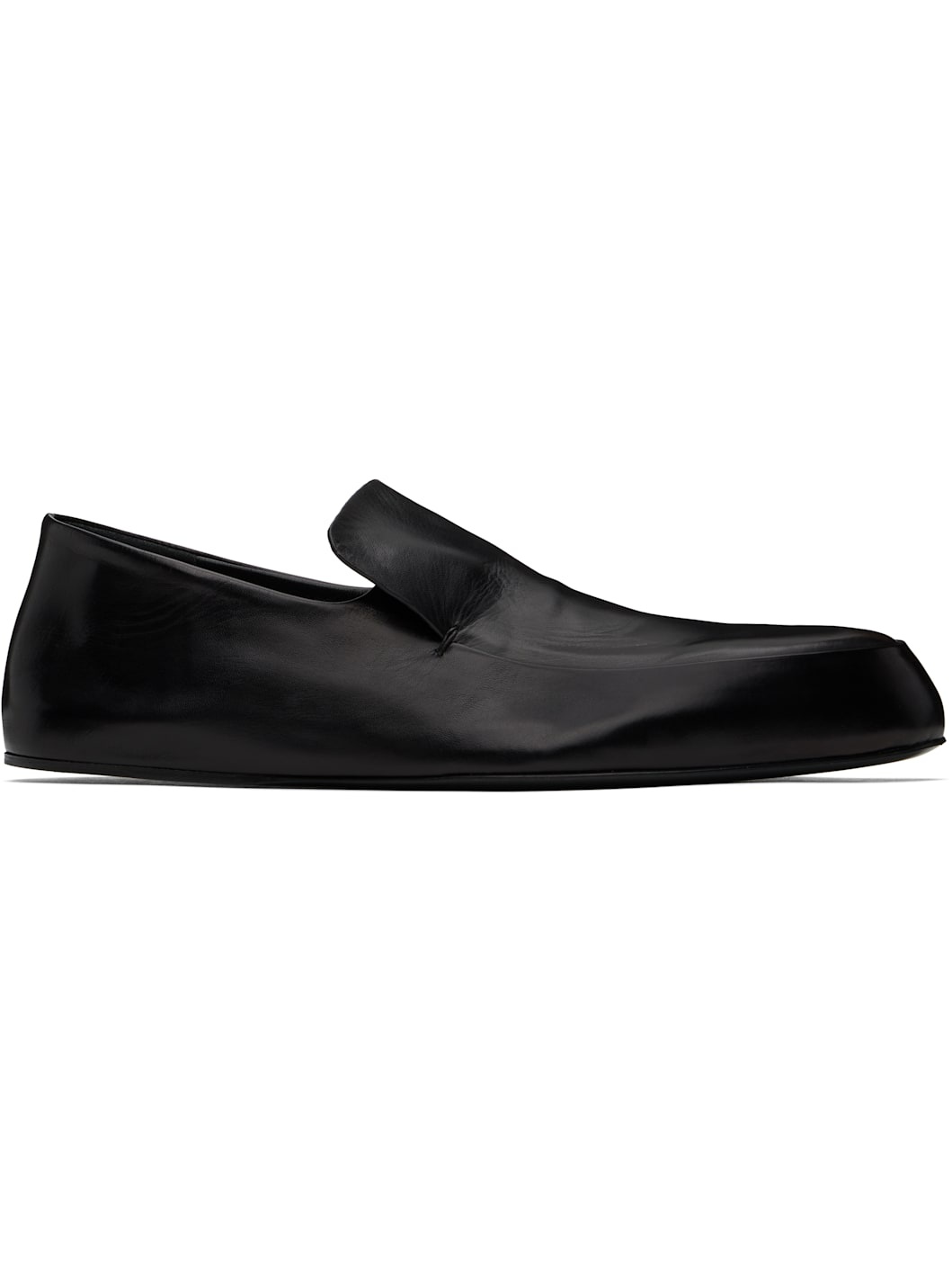 Lightweight buffed goatskin loafers in black. · Pointed toe · Partially elasticized collar · Logo patch at leather footbed · Buffed nappa leather lining · Calfskin sole with rubber injections Supplier color: Black Upper: goatskin. Sole: calfskin. Made in Italy 251249F121000