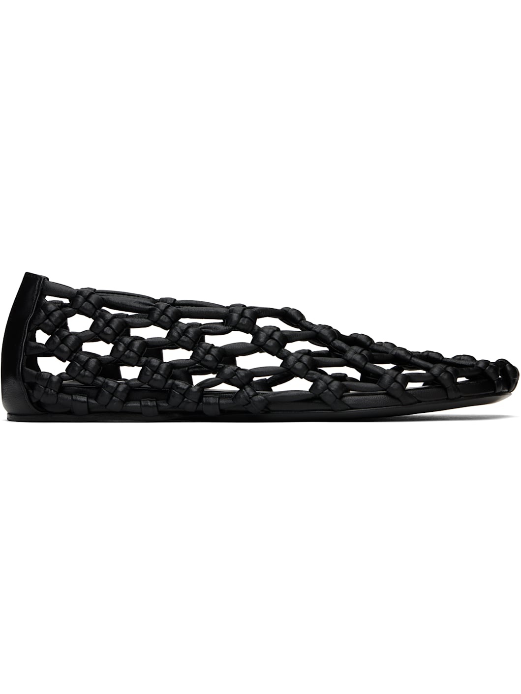 Hand-knotted nappa leather ballerina flats in black. · Square toe · Logo patch at footbed · Calfskin sole with rubber injections Supplier color: Black Upper: leather. Sole: calfskin, rubber. Made in Italy 251249F118002