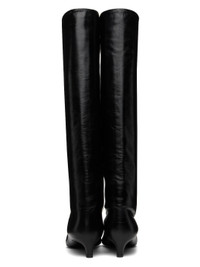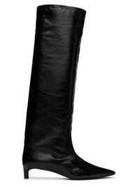 Knee-high crinkled calfskin boots in black. · Pointed toe · Buffed leather lining · Covered kitten heel with rubber injection · Leather sole · Heel: H1.25" Supplier color: Black Upper: calfskin. Sole: leather. Made in Italy 242249F115004