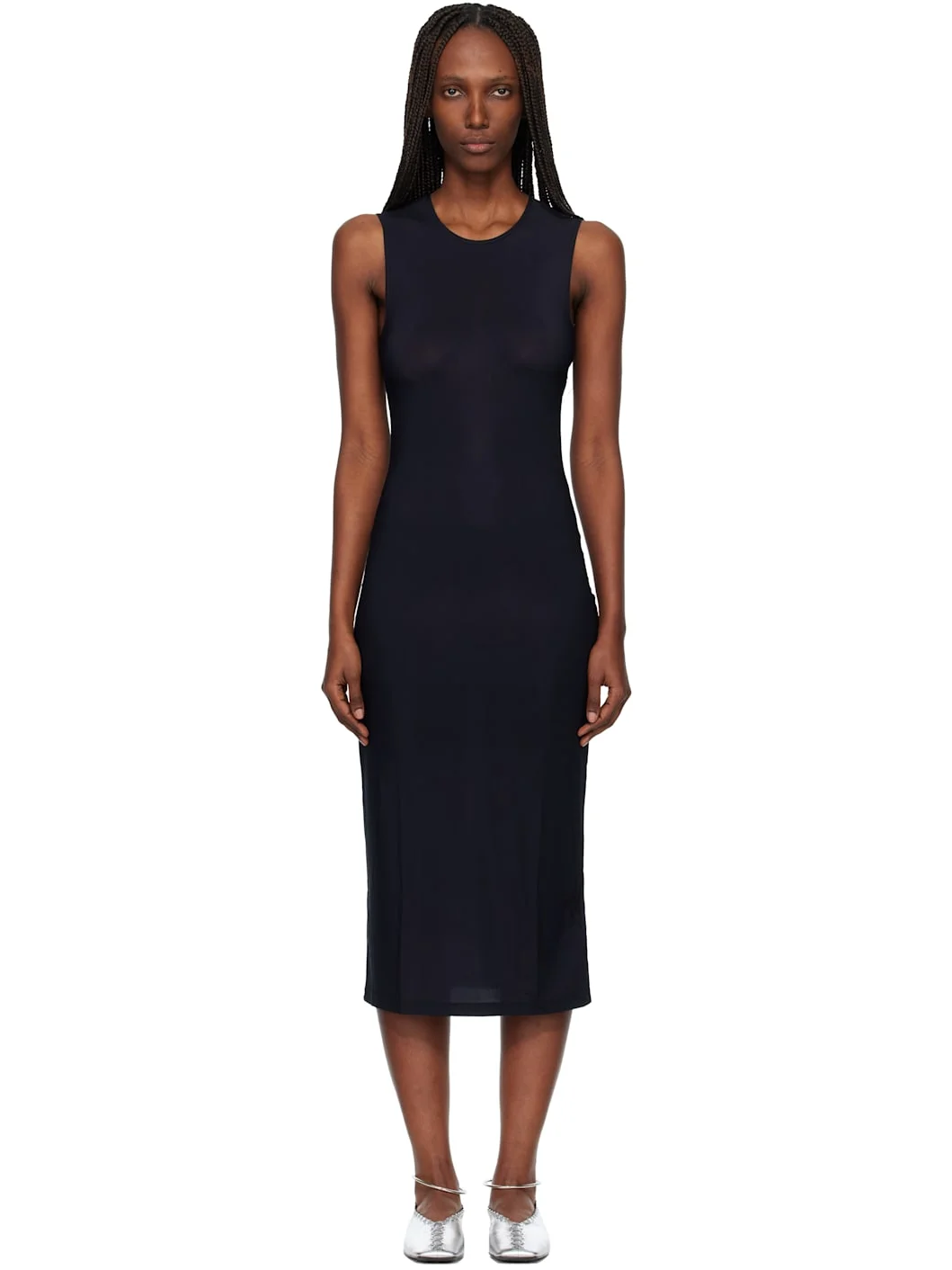 Stretch jersey midi dress. · Semi-sheer · Slim-fit · Round neck Supplier color: Ink 74% polyamide, 26% elastane. Made in Italy 252249F054001