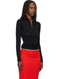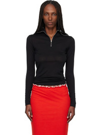 Lightweight virgin wool-blend jersey polo. · Semi-sheer · Logo printed at turtleneck · Half-zip closure at front · Graphic silver-tone hardware Part of the Jill Sander+ collection. Supplier color: Black 55% polyester, 45% virgin wool. Made in Italy 252249F108003