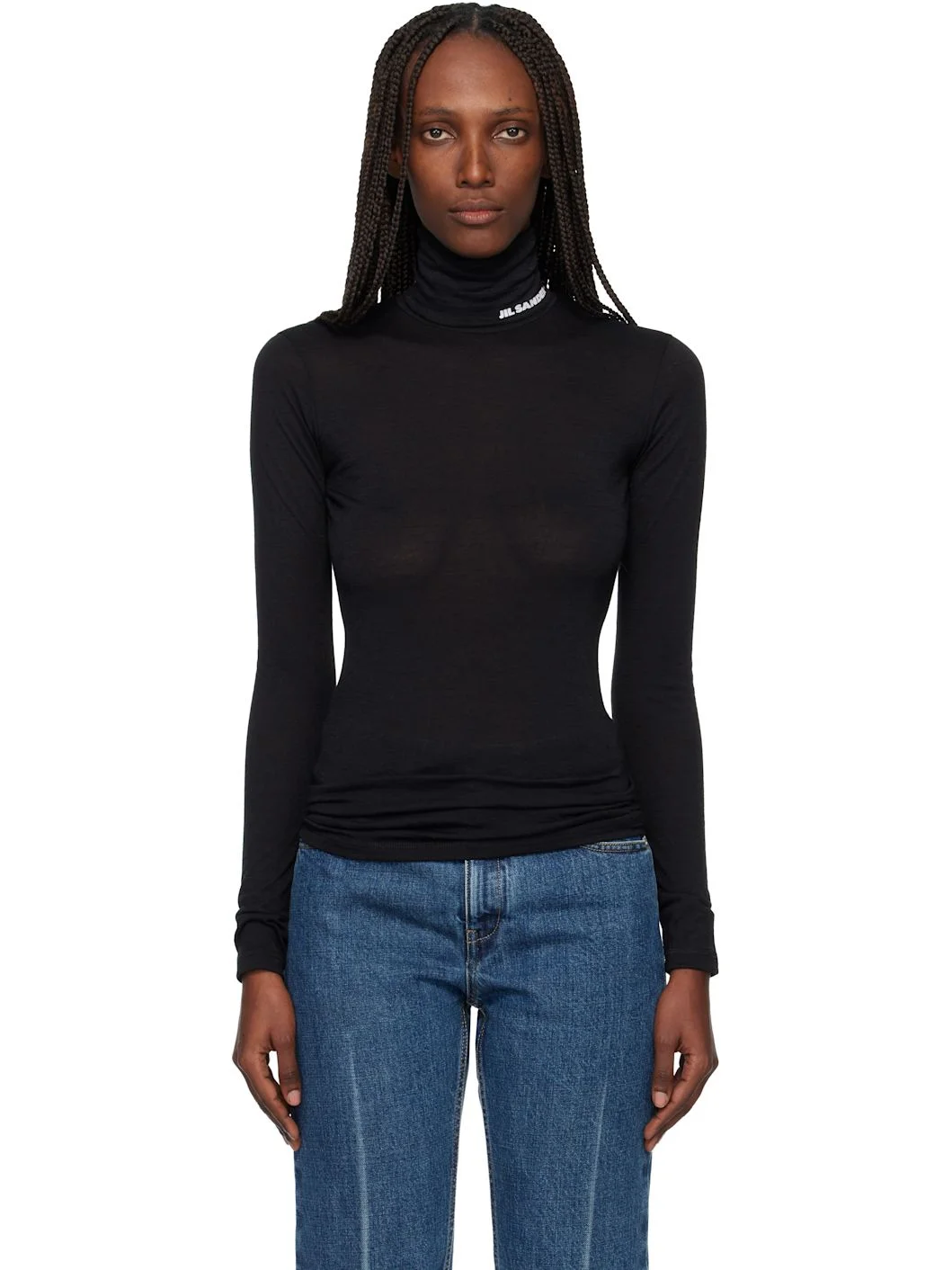 Lightweight virgin wool-blend jersey turtleneck. · Slim-fit · Logo printed at collar Part of the Jill Sander+ collection. Supplier color: Black 55% polyester, 45% virgin wool. Made in Italy 252249F099000