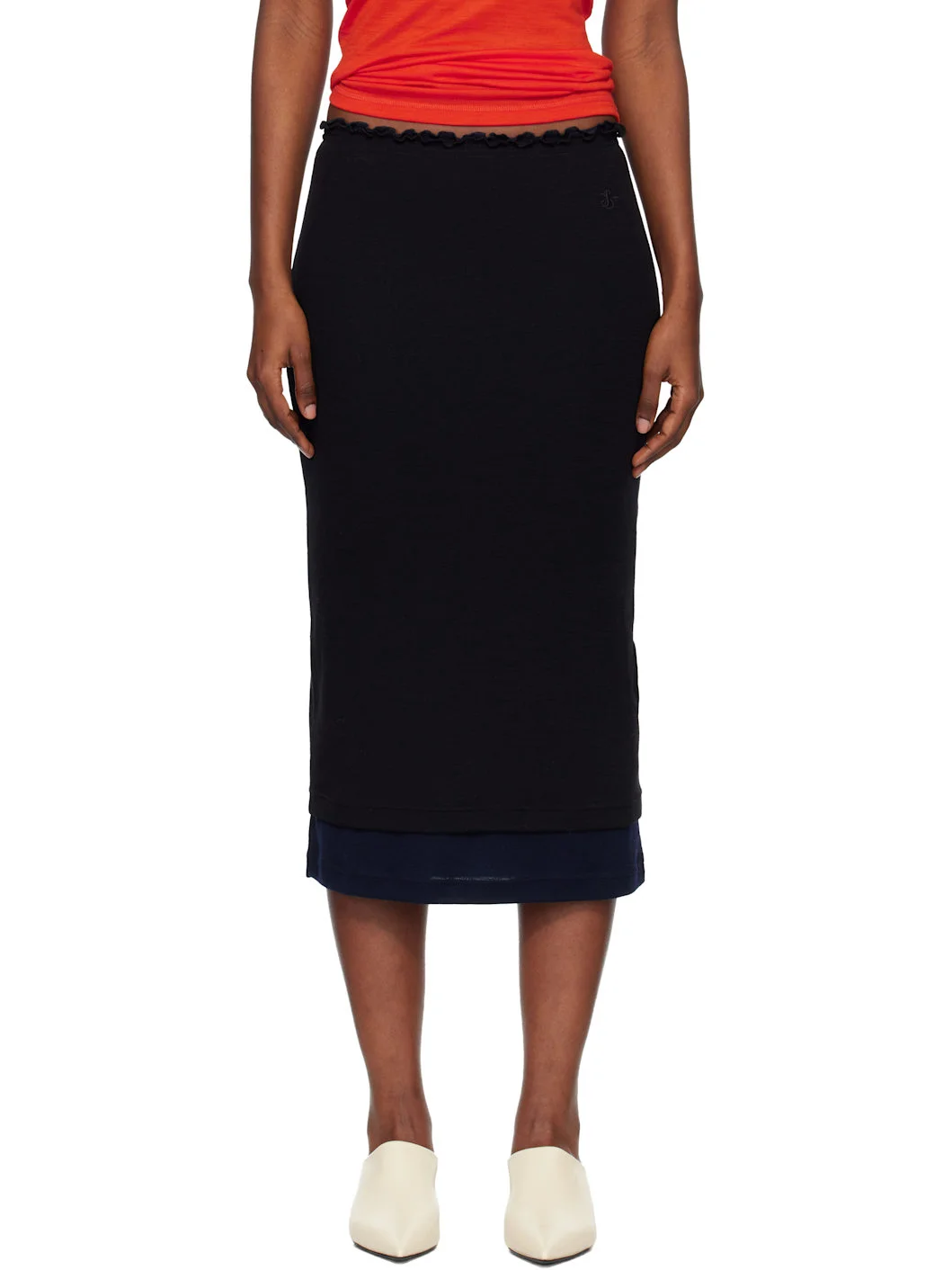 Set of two virgin wool jersey midi skirts. · Lightweight · High-rise · Ruffled elasticized waistbands · Logo embroidered at front Part of the Jil Sander+ collection. Supplier color: Black/Navy 100% virgin wool. Made in Italy 252249F092004