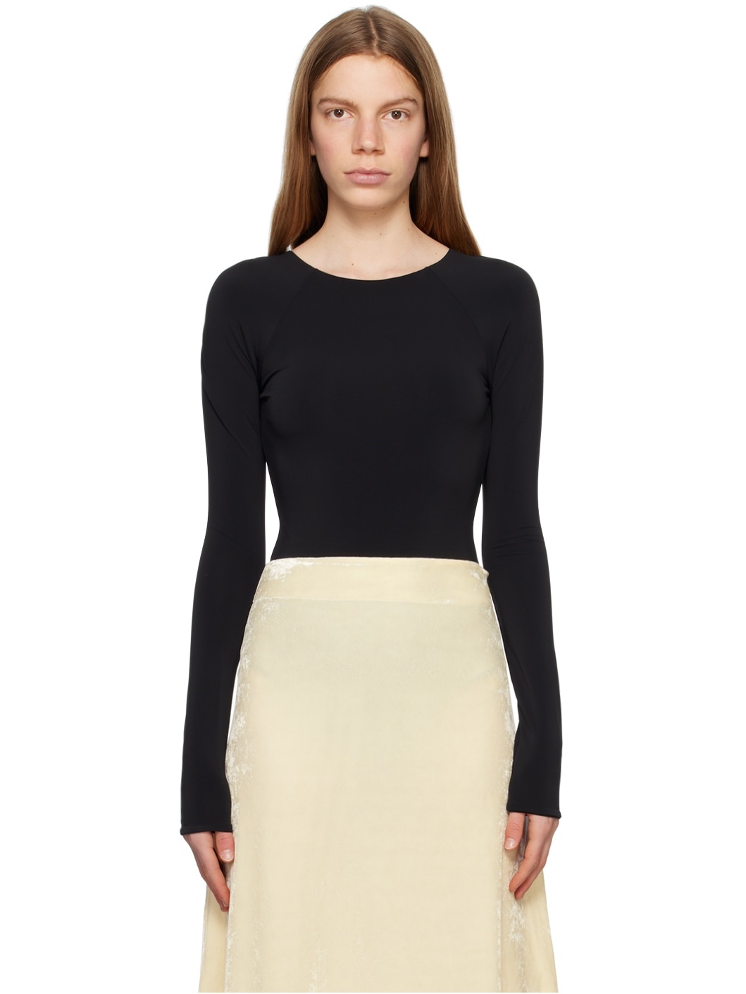 Stretch viscose jersey bodysuit. · Crewneck · Press-stud fastening at bottom · Raglan sleeves · Knot detailing at open back Supplier color: Black 94% viscose, 6% elastane. Made in Italy 231249F358000