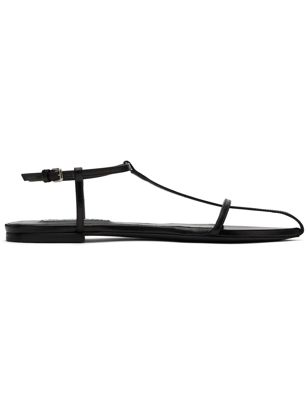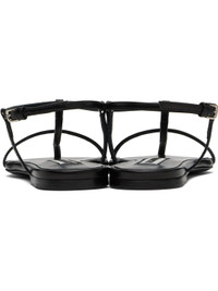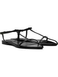 Buffed goatskin flat sandals in black. · Open pointed toe · Straps at vamp · Adjustable pin-buckle ankle strap · Logo patch at padded footbed · Stacked leather heel with rubber injection · Leather sole with rubber injection Supplier color: Black Upper: goatskin. Sole: leather, rubber. Made in Italy 251249F124003