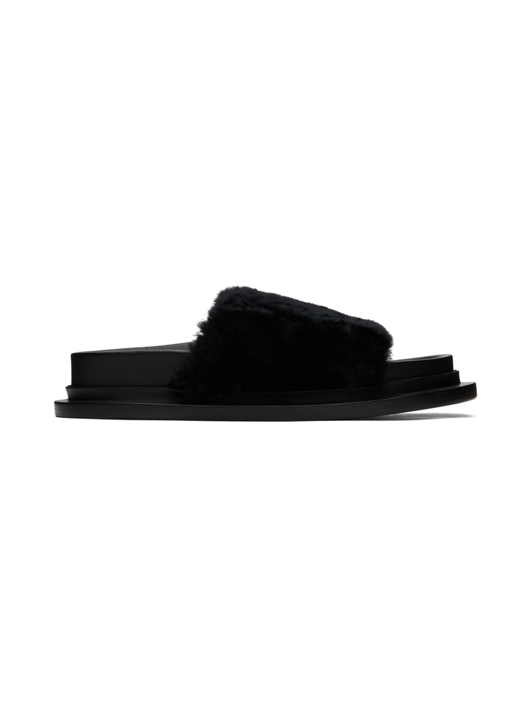 Shearling sandals in black. · Open round toe · Leather sole with rubber injection Supplier color: Black Upper: lambskin. Sole: leather. Made in Italy 222249F124000
