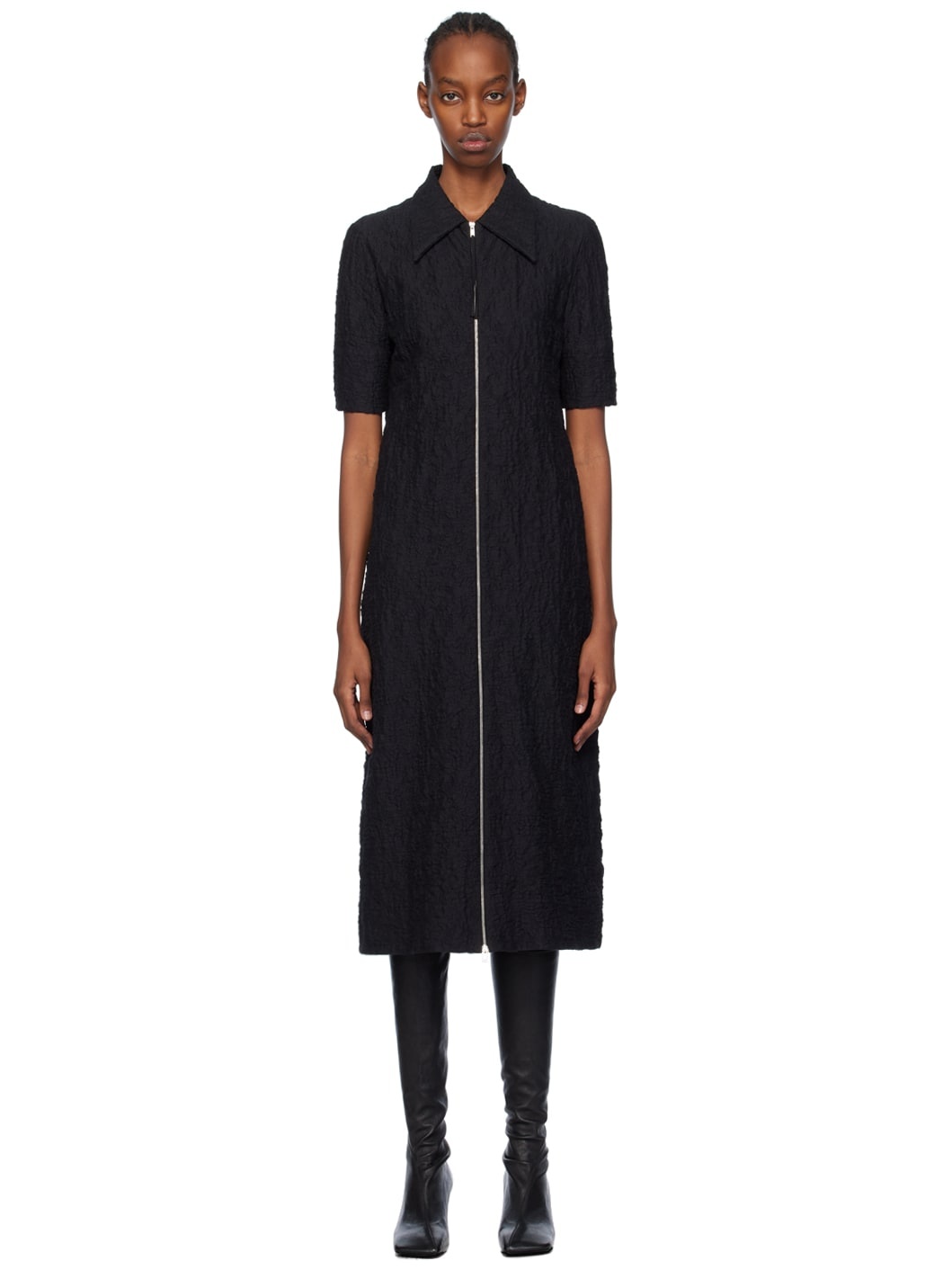 Cotton- and nylon-blend matelassé dress. · Spread collar · Two-way zip closure · Zip vent at cuffs · Full satin lining Supplier color: Black