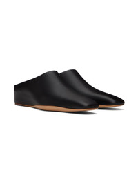 Buffed calfskin mules in black. · Pointed square toe · Logo patch at padded leather footbed · Buffed leather lining · Covered wedge heel · Leather sole with rubber injection · Heel: H1.5" Supplier color: Black