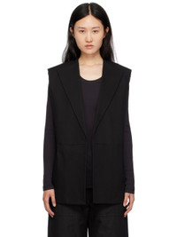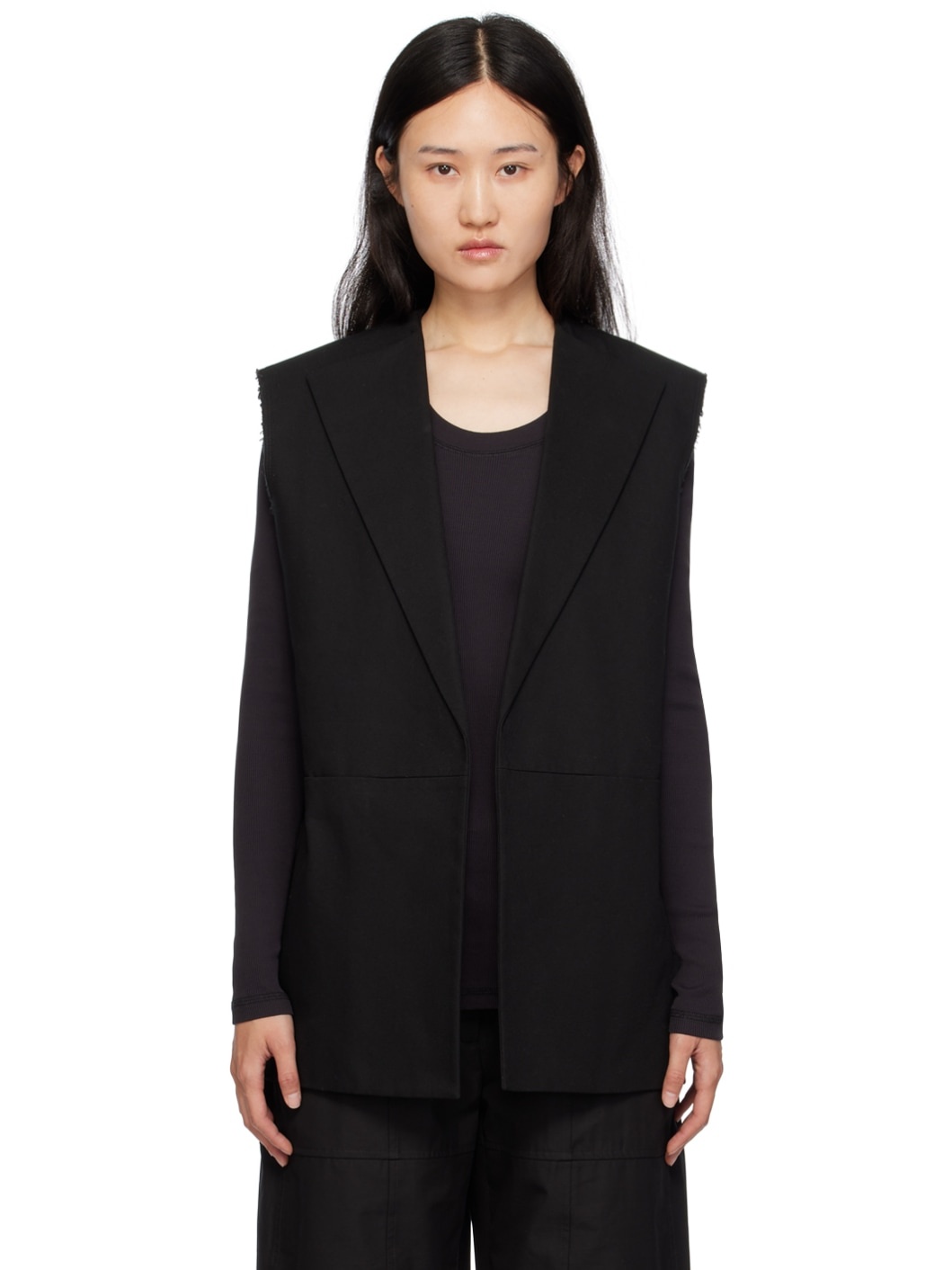 Cotton oxford cloth vest. · Paneled construction · Modified peaked lapel · Fraying at armscyes · Welt pockets at interior · Full plain-woven cotton lining Supplier color: Black