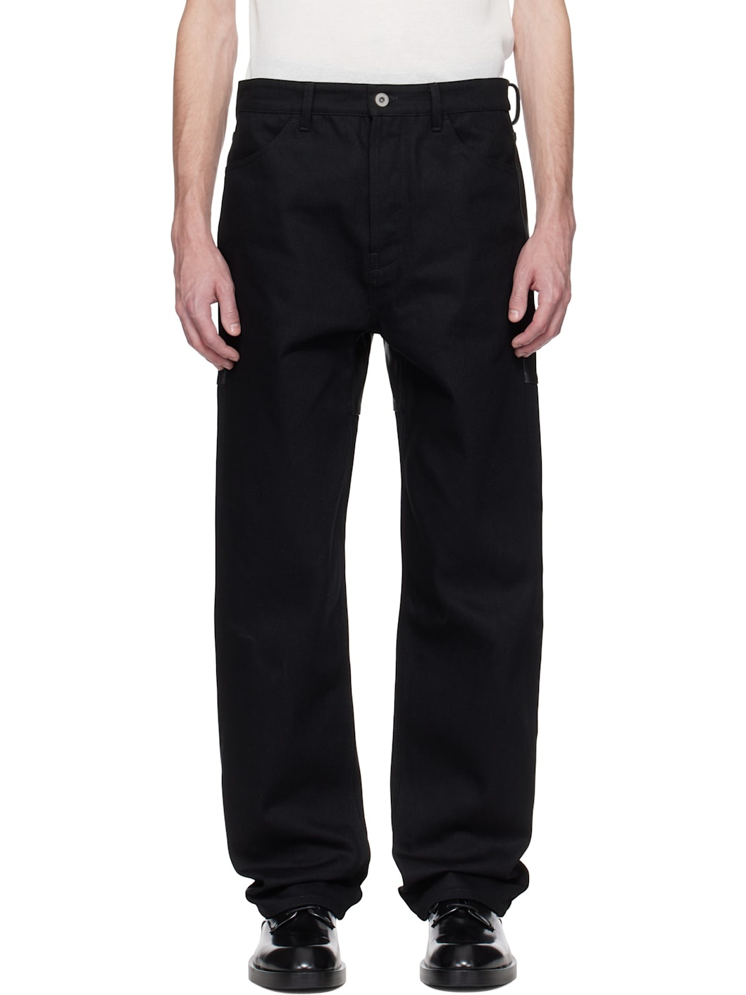 Non-stretch denim jeans. · Paneled construction · Belt loops · Four-pocket styling · Button fly · Grained calfskin panel at back waist Supplier color: Magnet Body 1: 100% cotton. Body 2: 100% calfskin. Made in Italy 251249M191004
