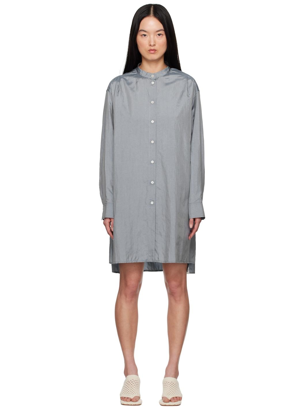 Nylon- and silk-blend canvas minidress. · Band collar · Button closure · Droptail hem · Dropped shoulders · Single-button barrel cuffs · Locker loop at back collar · Twin pleats at yoke · Logo patch at back hem Supplier color: Pewter blue 64% polyamide, 36% silk. Made in Italy 251249F109013