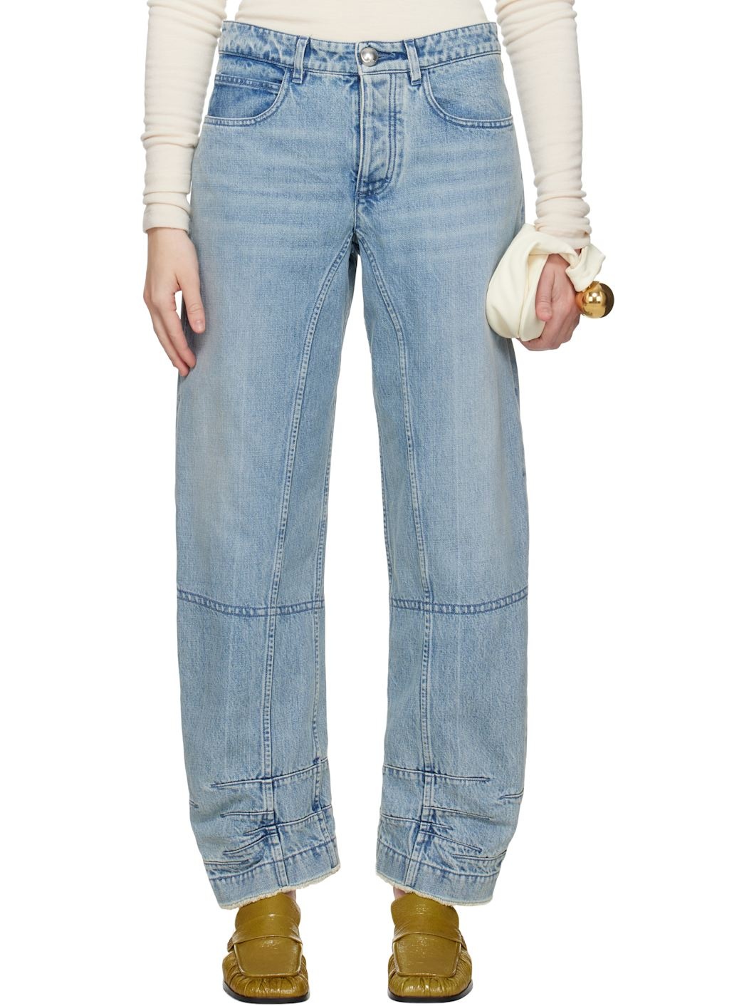 Loose-fit non-stretch organic cotton denim jeans. Fading and whiskering throughout. · Paneled construction · Belt loops · Five-pocket styling · Button fly · Darts and frayed edge at cuffs · Logo patch at back waistband Supplier color: Antarctic 100% cotton. Made in Italy 251249F069001
